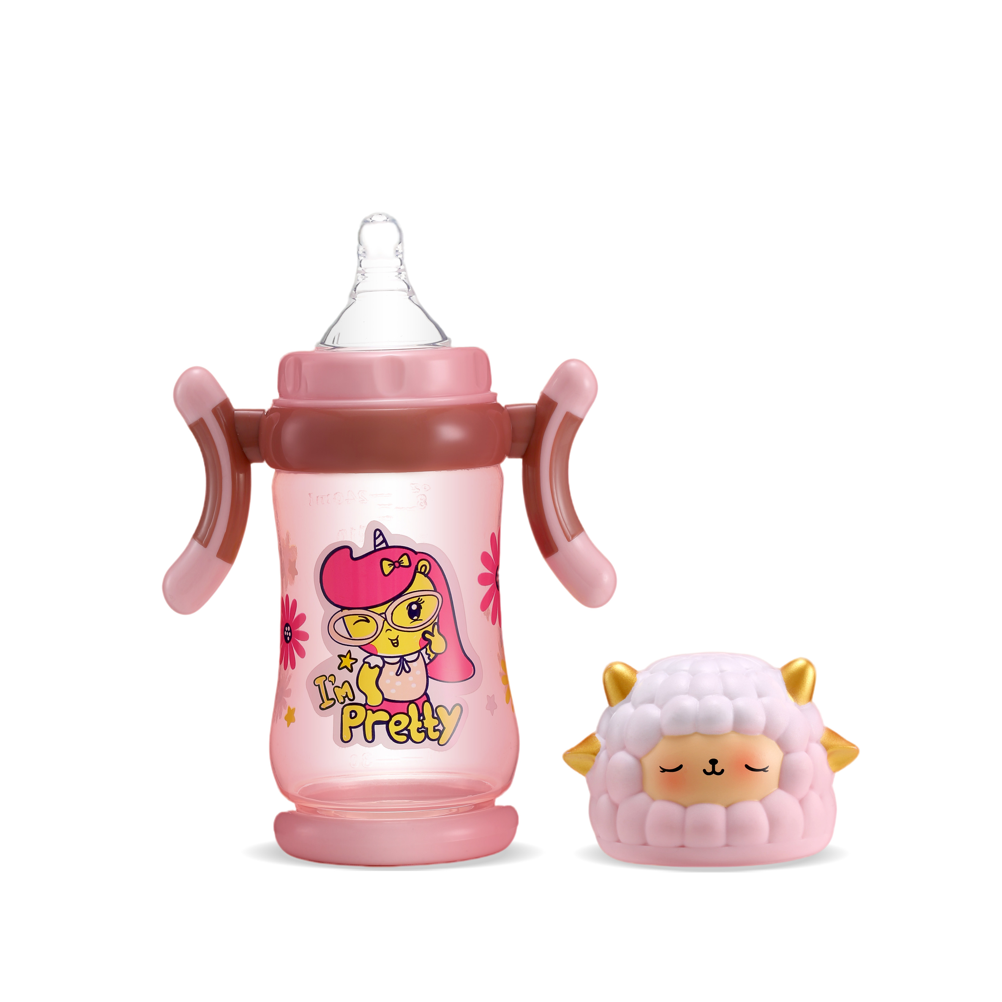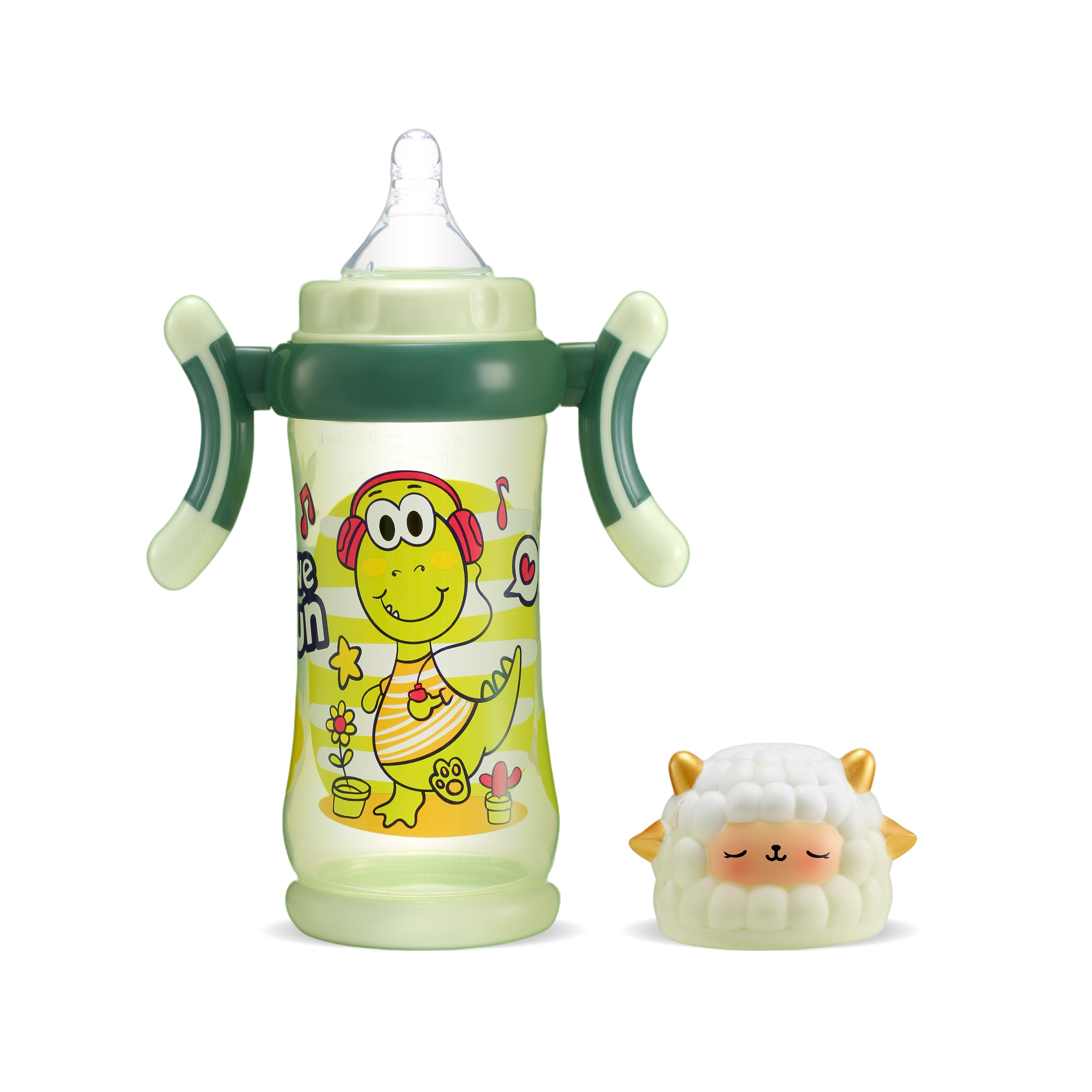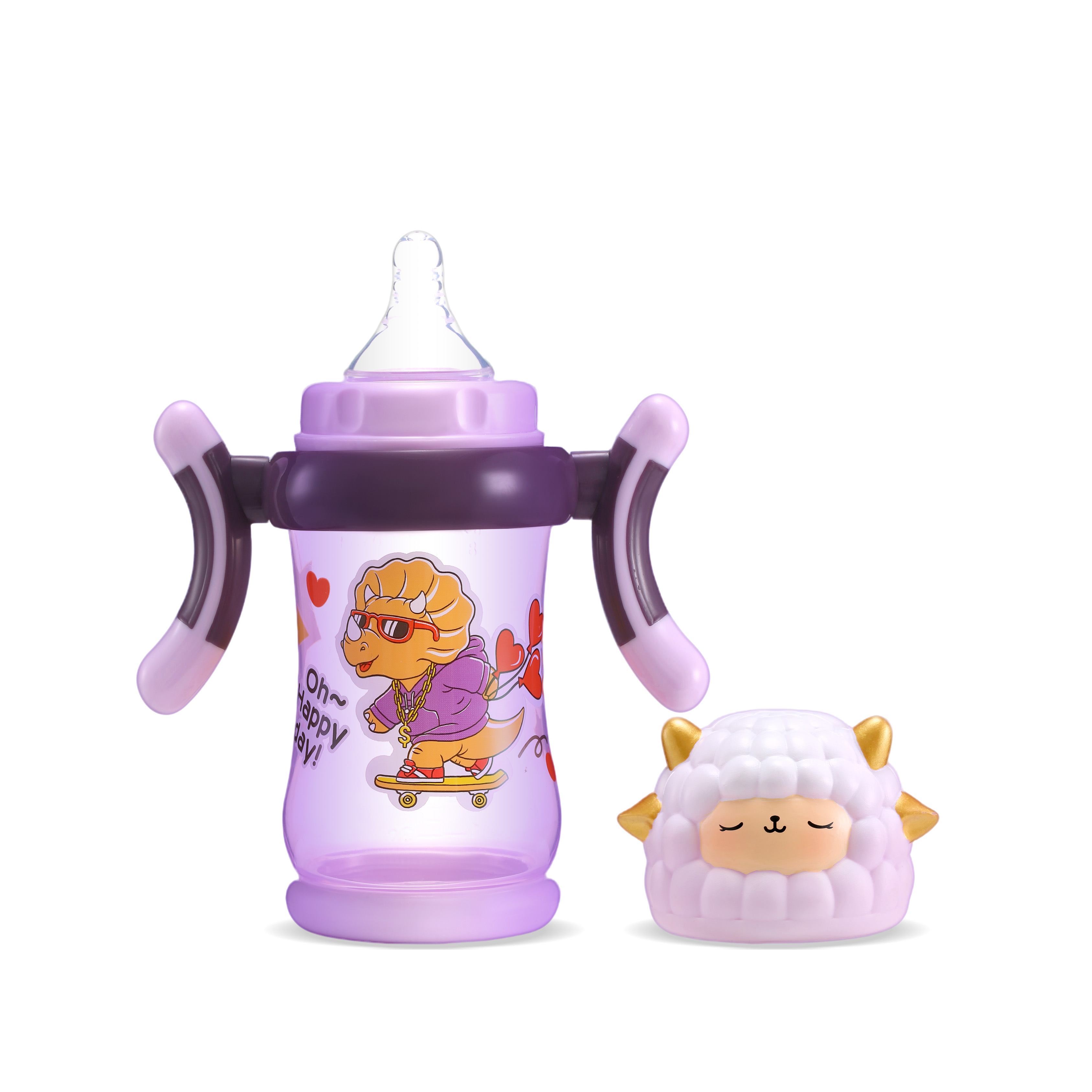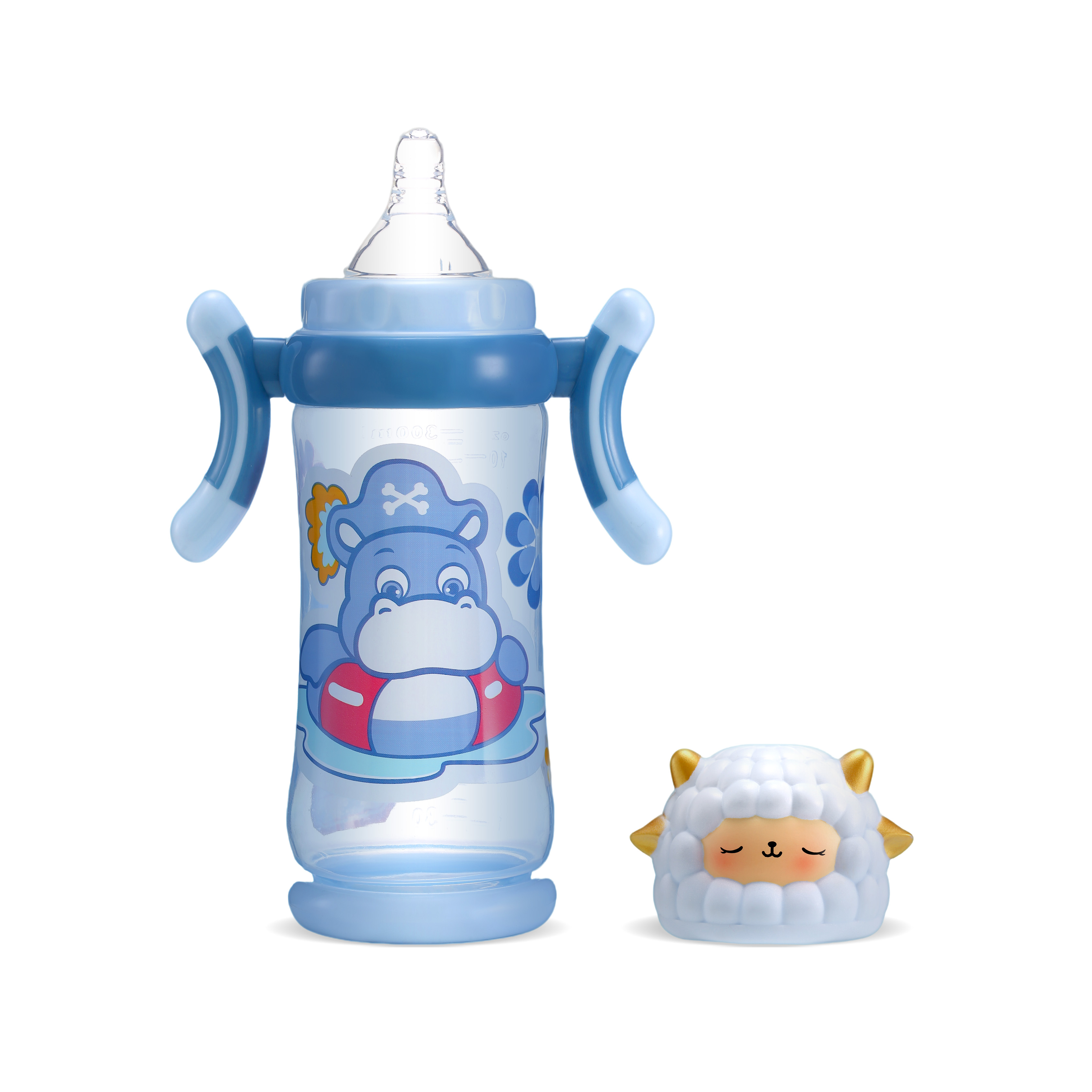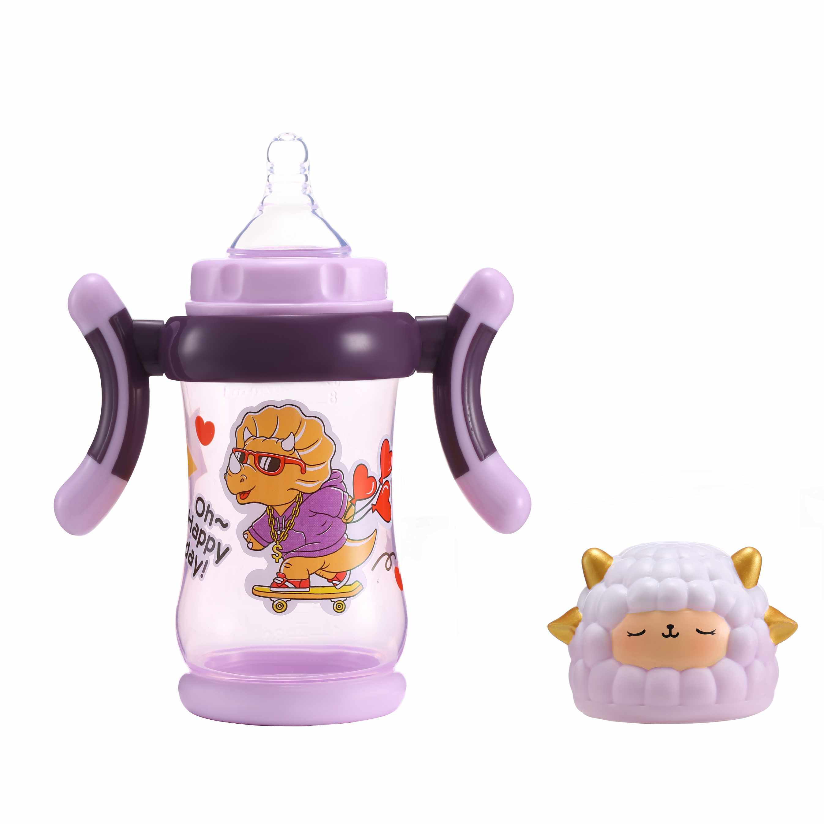 زجاجة FISH Cartoon Sheep - مجموعة هدايا مميزة للأطفال الرضع! غطاء على شكل قرن خروف مزين برسومات حيوانات بأربعة ألوان، مصنوع من مادة PP+سيليكون صالحة للاستخدام الغذائي. زجاجات سعة 240 و300 مل مع مقابض منحنية (باللون الوردي الفاتح/الأزرق/الأخضر/الأرجواني)، تساعد على تدريب الأطفال من عمر 6 إلى 24 شهرًا على الإمساك بالأشياء، هدية مميزة للمناسبات الخاصة.