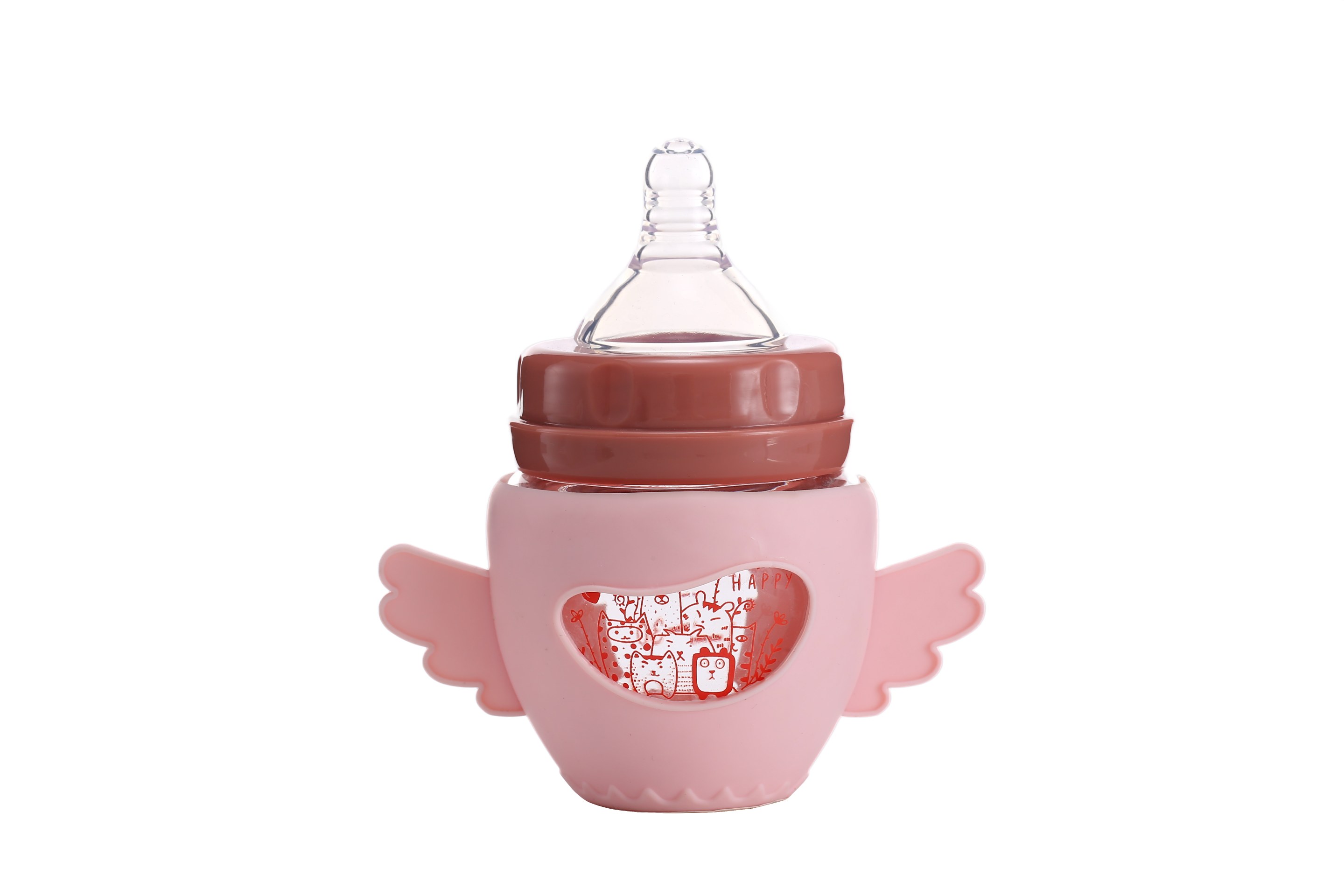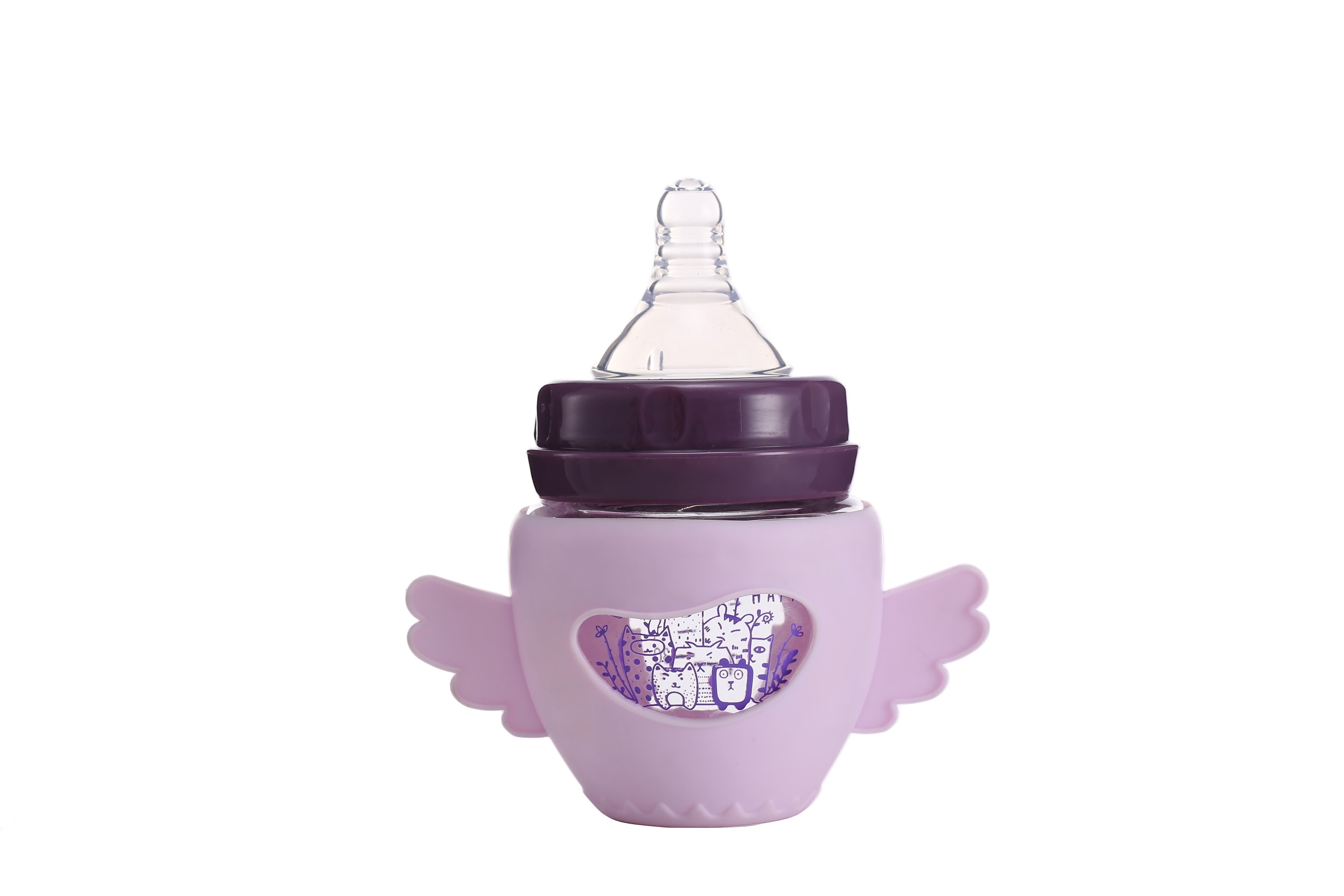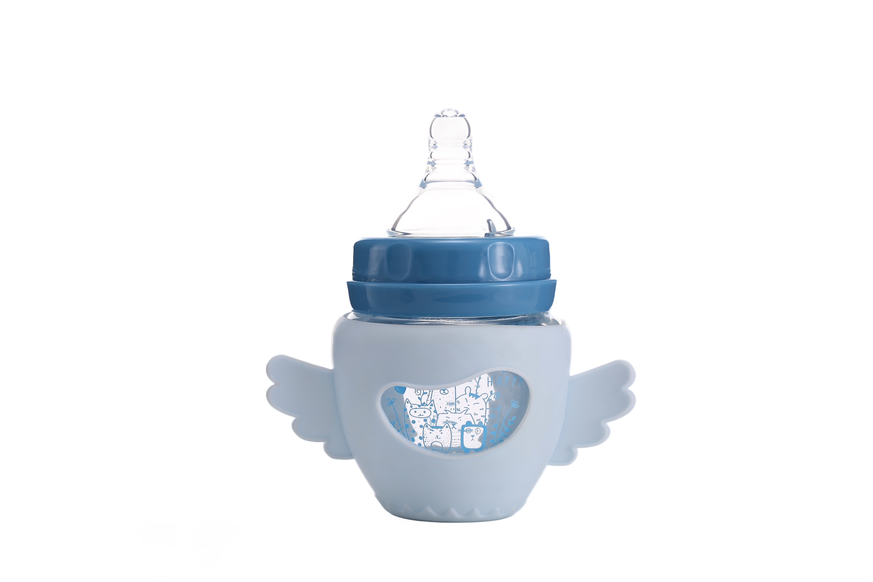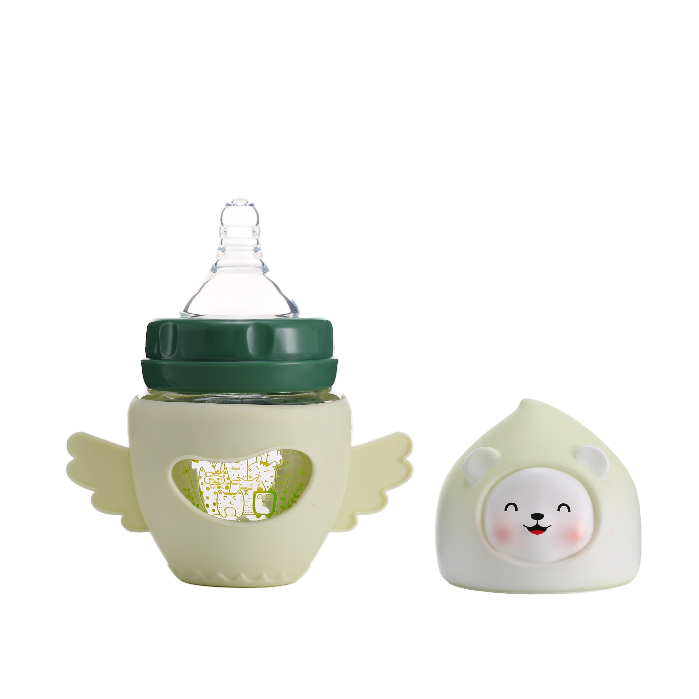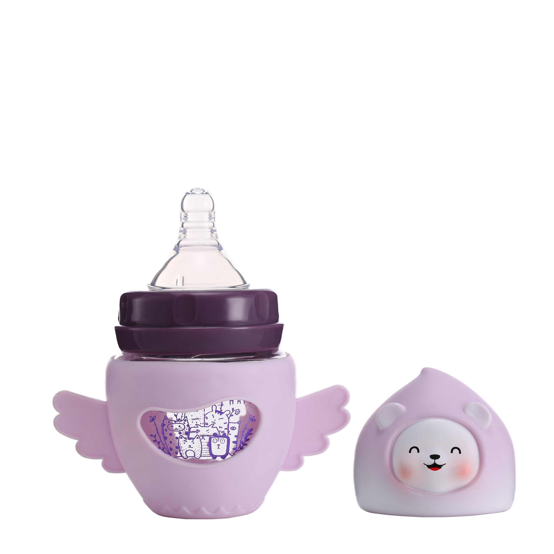 كوب زجاجي FISH Bear Rocket - تصميم دب مجنح غريب الأطوار، تعبير مبهج. زجاج بورسليكات 80 مل. مجموعة هدايا رباعية بألوان حالمة. ضروري لتغذية الأطفال من 0 إلى 12 شهرًا.